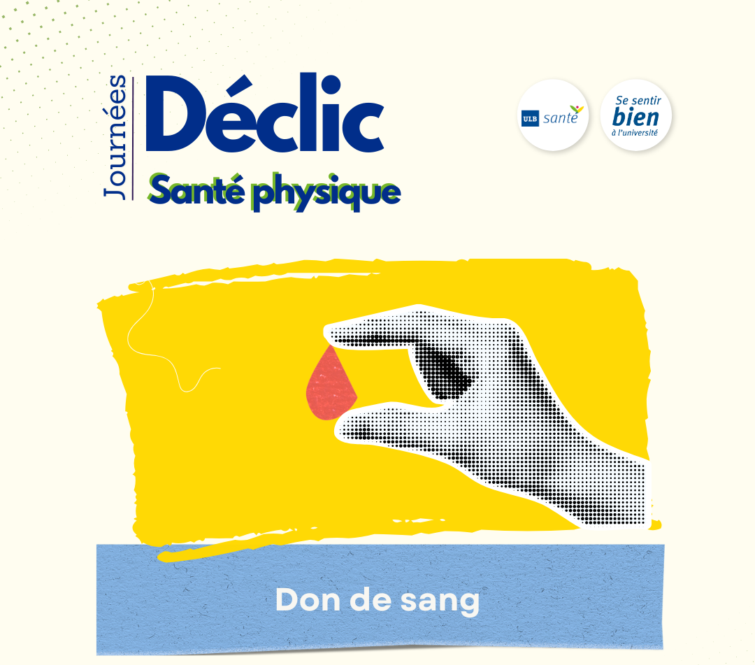 - Collecte de sang au Solbosch - Mai 202316 mai 2023La Croix-Rouge organise une collecte de sang le 4 et 5 mai, de 10h30 à 15h30, sur le campus du Solbosch, avec le soutien d'ULB Santé. Inscrivez-vous au préalable et rendez-vous le jour même à la salle Somville (bâtiment S, niveau 2).