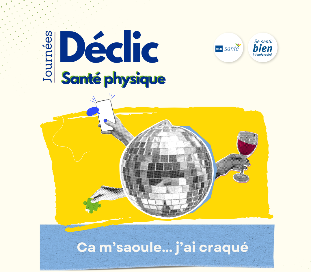 - Déclic santé : prendre soin de son bien-être mental16 mai 2023Découvrez fin novembre les journées "Déclic santé : prendre soin de son bien-être mental". 12h-22h, des conférences, ateliers et ciné-débat. Mardi 22 novembre sur le campus du Solbosch & Jeudi 24 novembre sur le campus d'Erasme.