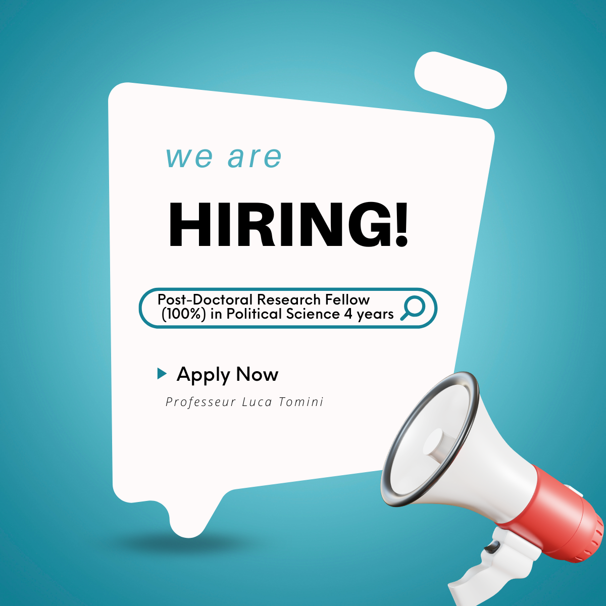- Vacancy Postdoctoral Researcher (100%) in Political Science1 juillet 2024